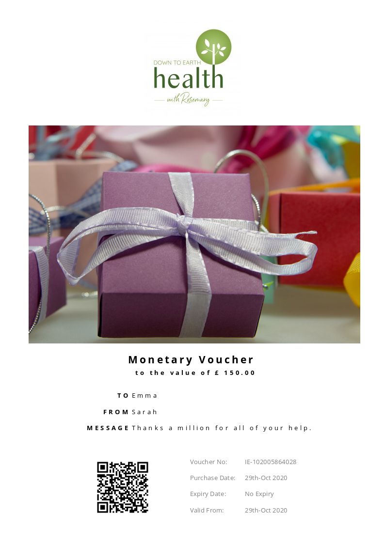 Down To Earth Health allows you to purchase instantly printable gift vouchers, special offers and tickets using the Voucher Connect platform.